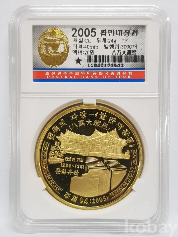 - 2005년(주체94) 팔만대장경 20원 프루프 인증 주화 - 민족의 자랑 팔만대장경