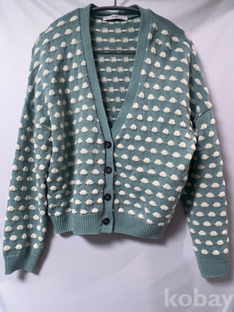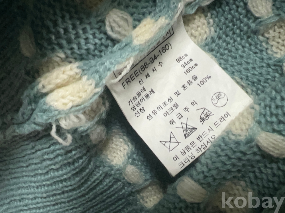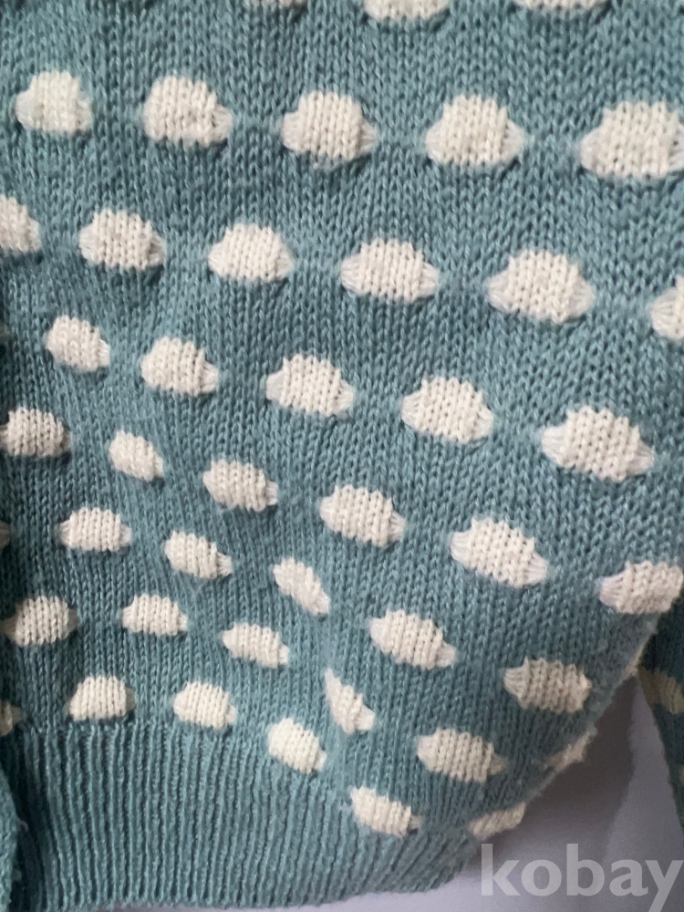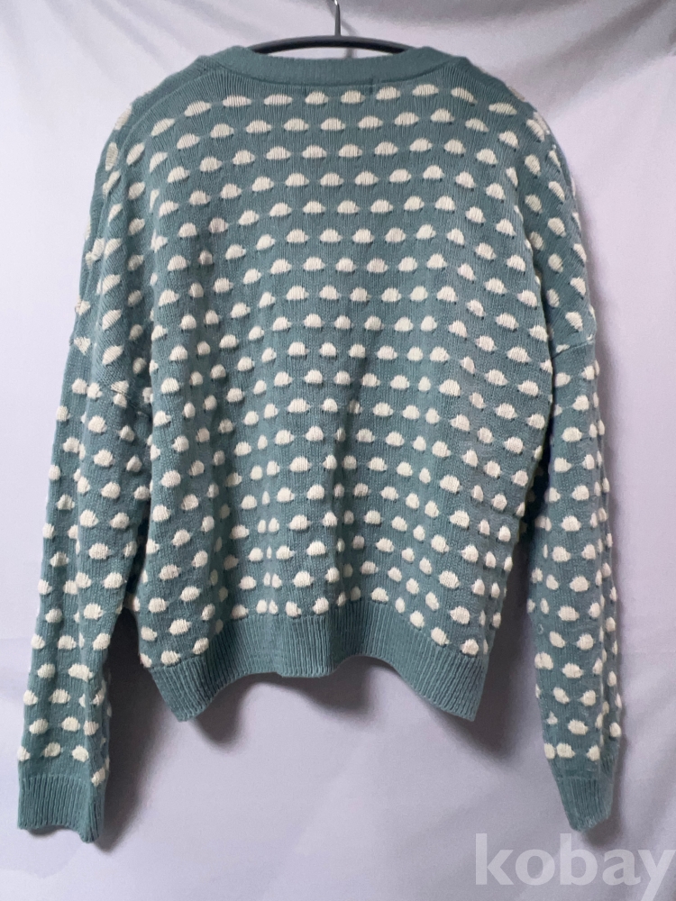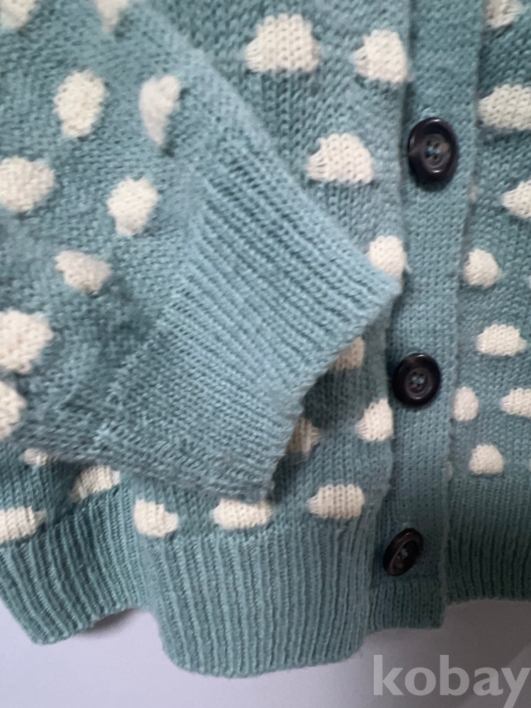 [천원경매] 민트 컬러 구름 패턴 브이넥 가디건 긴 팔 니트 여성용 66~77