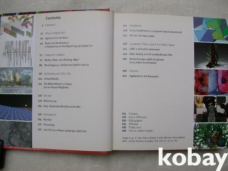 내표지에 다른 추가 기고자들도 밝혀 놓았다. 디지털아트란 무엇인가부터 컴퓨터그래픽/3D, Net Art, 소프트웨어아트, 핵티비즘, 미디어공간 등을 주제로 도판과 함께 서술하였다. 뒤에 용어해설 등이 있다.