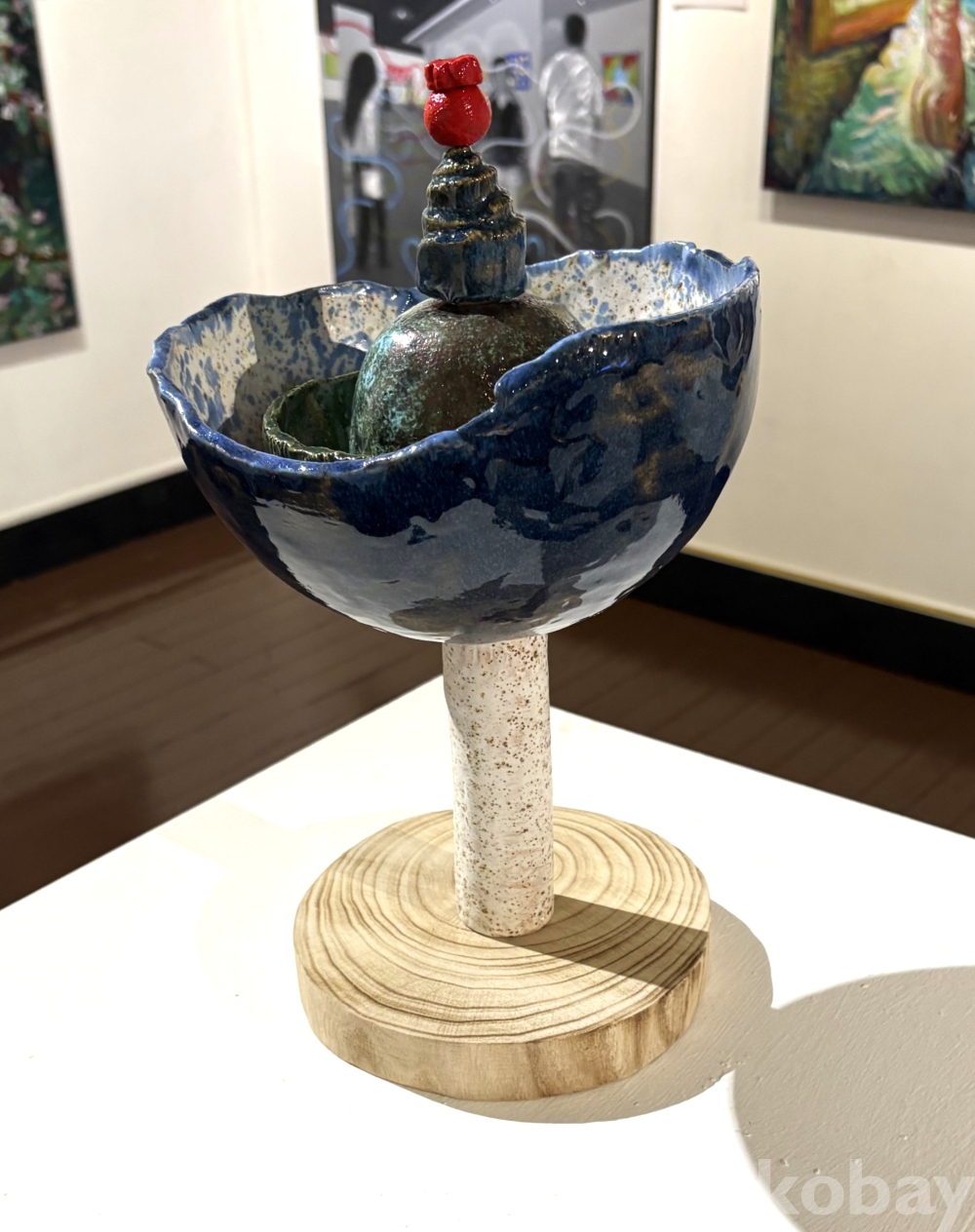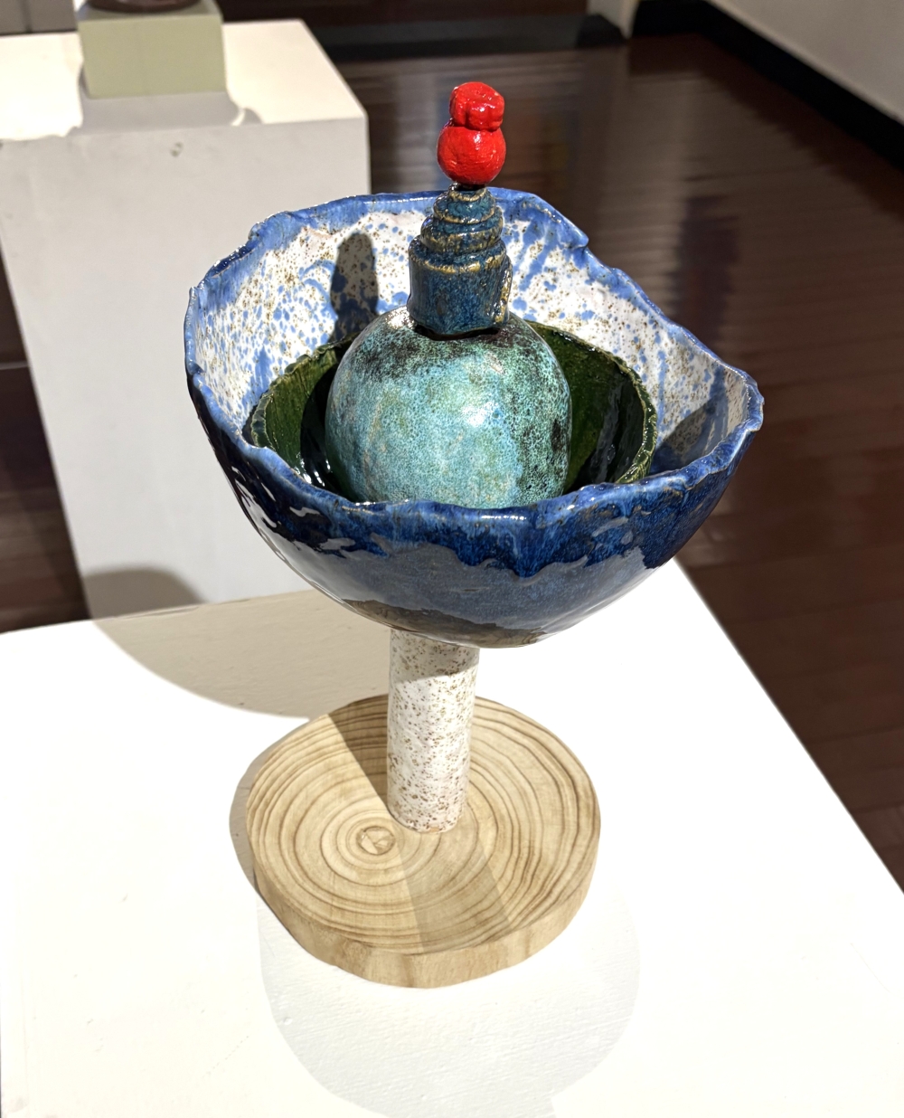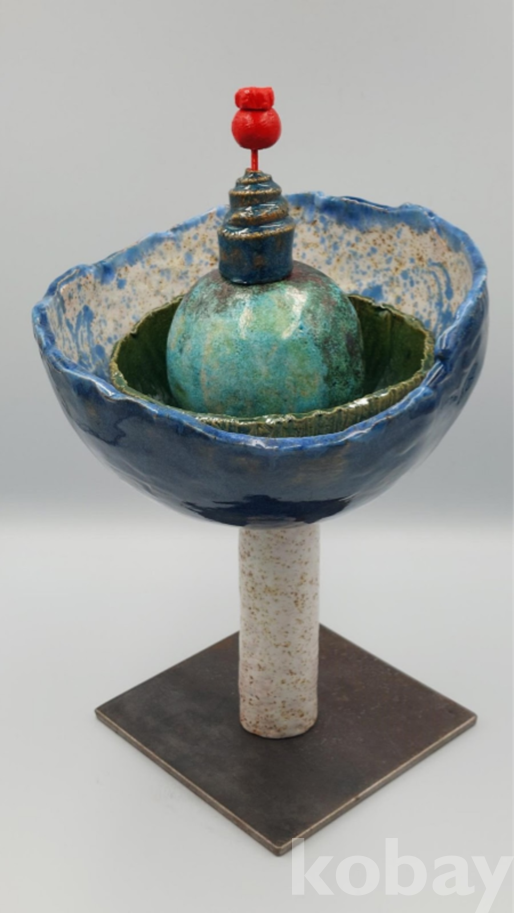기술 내화도자기, 다양한 유약, 나무받침 위에 라쿠유약