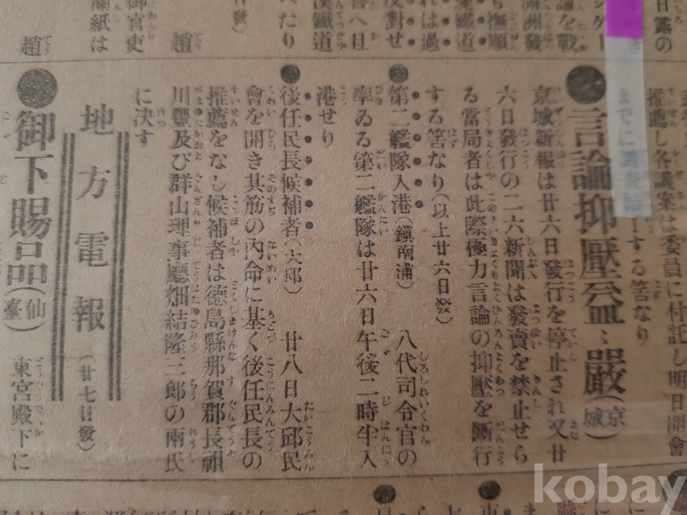 [FF18]*東京日日新聞/1911.4.28./朝鮮特電.회의소연합회,言論抑壓益と嚴(경성),제2함대