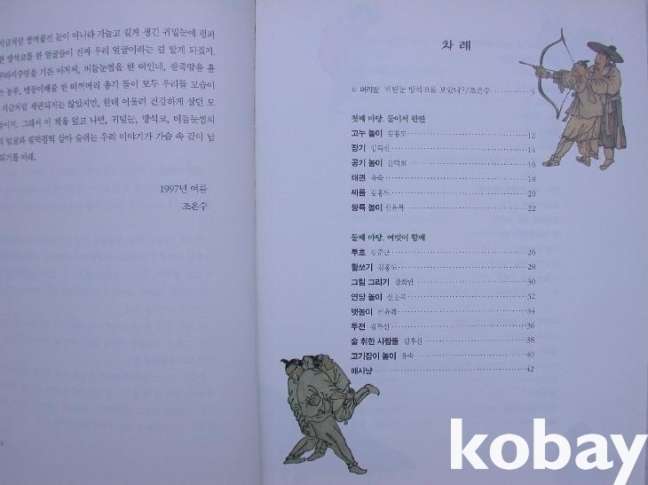 앞의 간기 위에 어린이책 및 시각디자인 분야에서 일한 지은이들을 소개하였다. 그림을 통해 "옛 사람들의 구수한 이야기"를 들어보자는 말이 머리말에 있다.