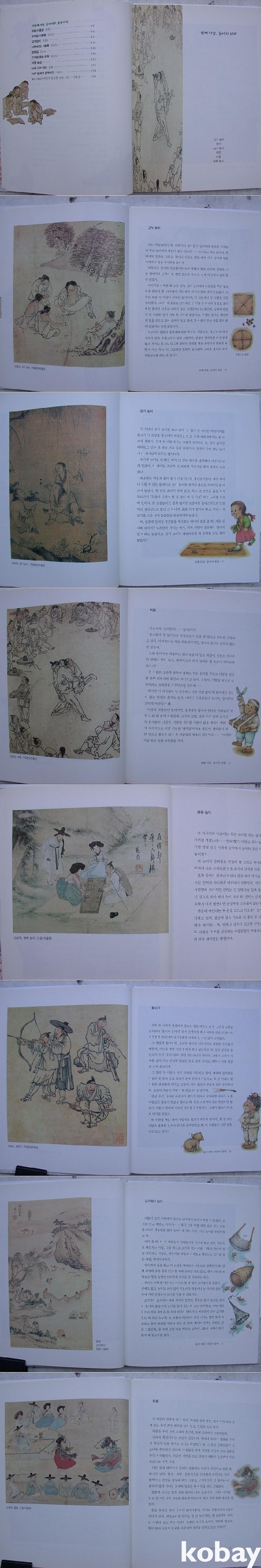 본문은 9마당으로 나누어 전통놀이, 한적한 시간의 사람들, 일하는 사람들, 장사꾼들 등 대표적인 그림을 찾아 싣고 그것을 보면서 들을 만한 이야기를 들려주듯 간략하게 서술하였다.