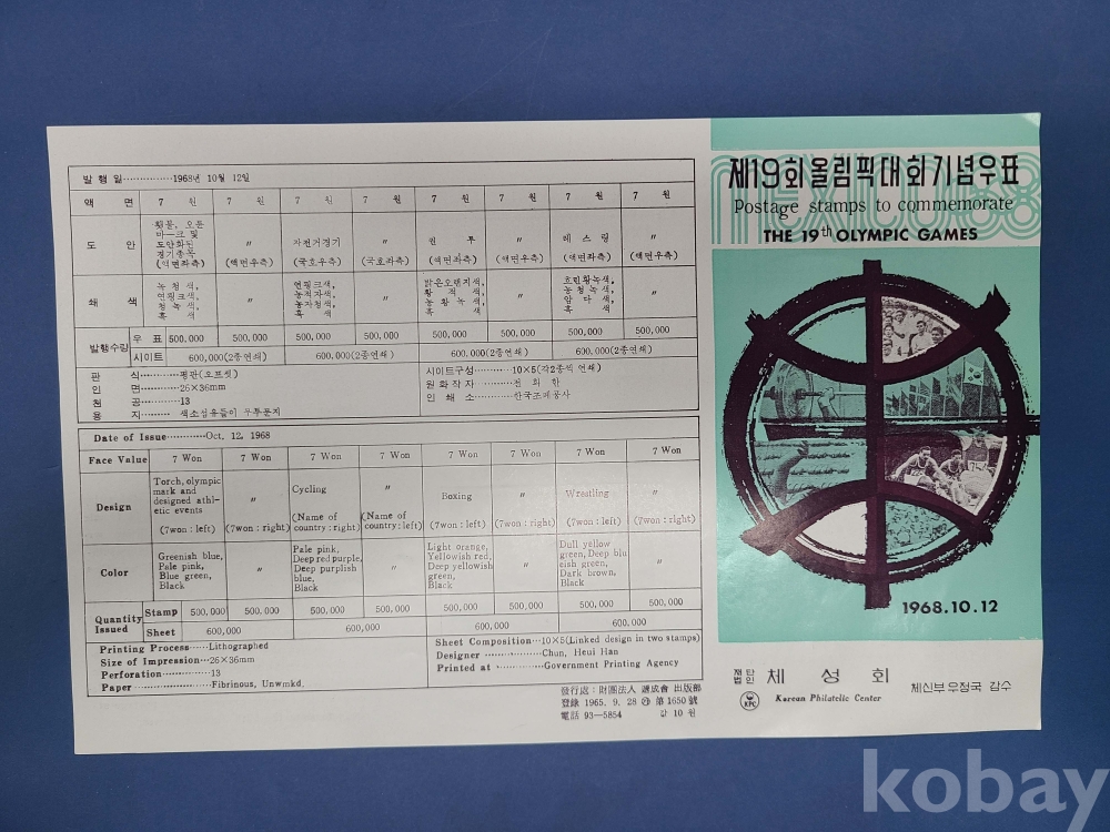 [안내카드] 제19회 올림픽대회기념(1968.10.12.)/접히지 않음