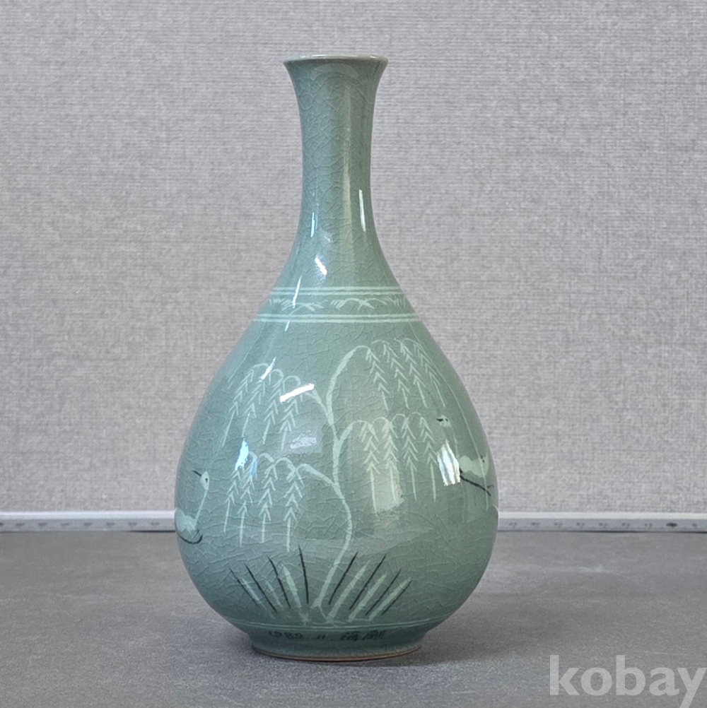 해강 유근형 선생님 포류수금문 주병 작품 입니다.