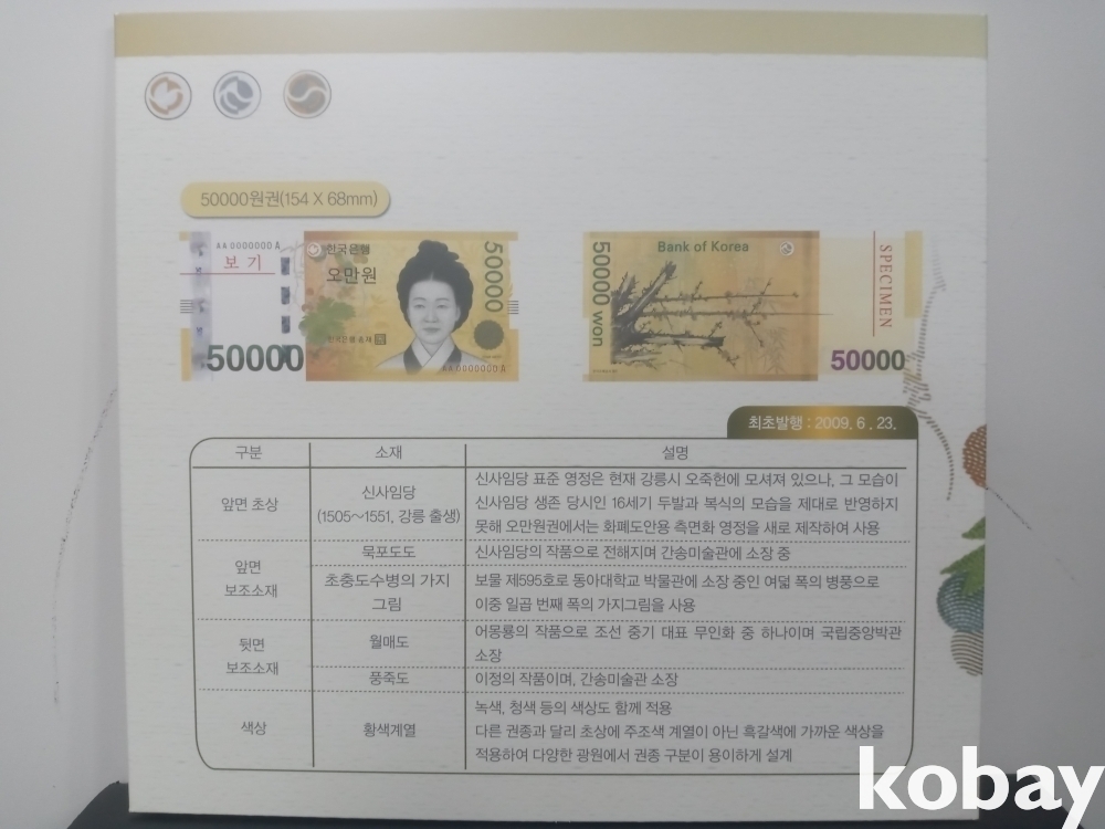 (비매품/ 증정용) 한국조폐공사 발행 증정용 화폐첩(오만원권)