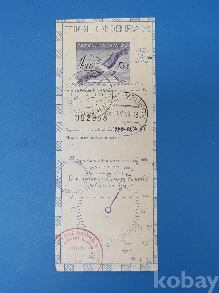 **** 우편*조류/ 1968년 체코슬로바키아 비둘기우편(PICEONGRAM) 실체