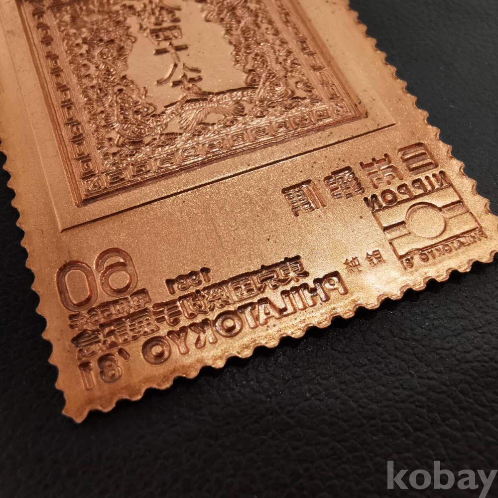이 우표는 일본 우정성 150주년 기념하기위해 발행된 순금 우표 입니다