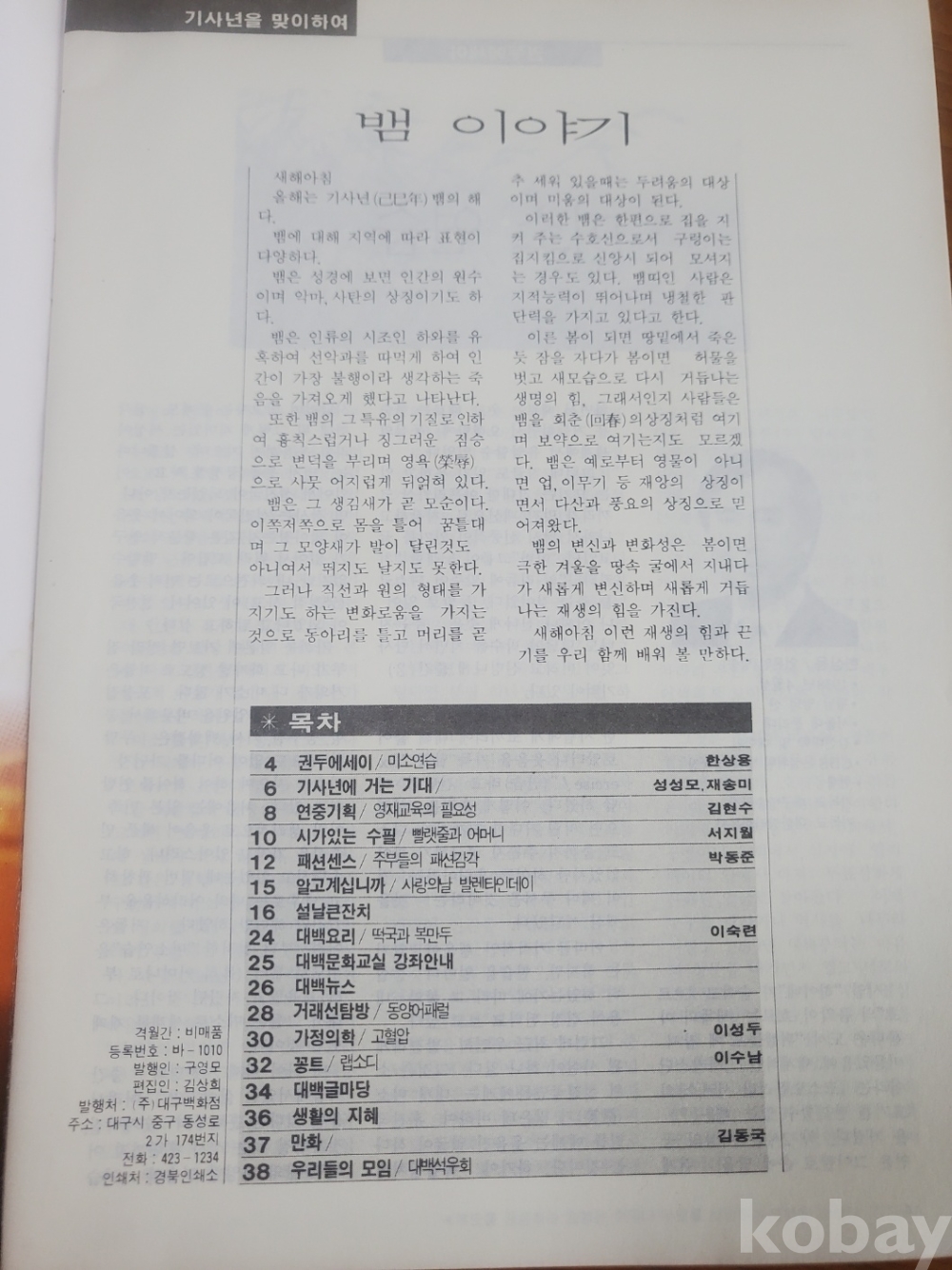 1. 대백 통권 53호, 대구백화점, 1989년, 38쪽, 격월간, 비매품, 상태 상, 사진 참조