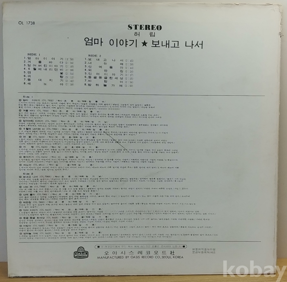 허림 (엄마 이야기 / 보내고 나서) 1975년 오아시스레코드 초반