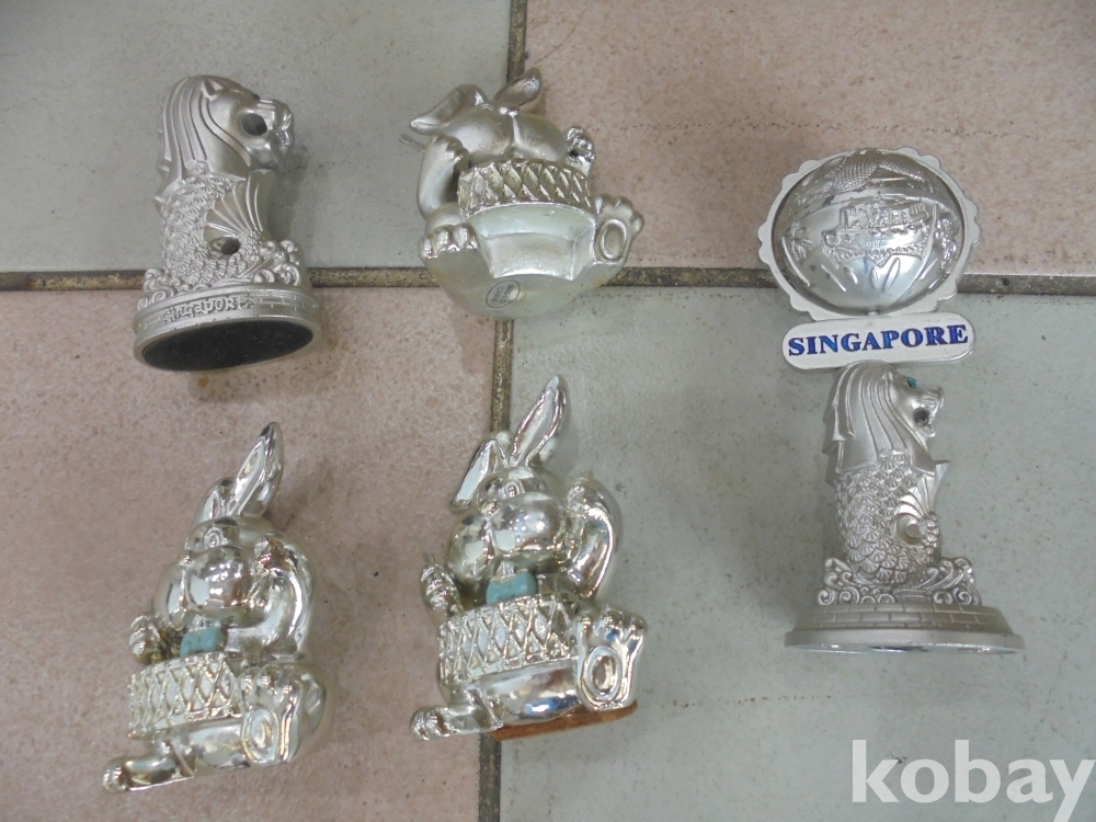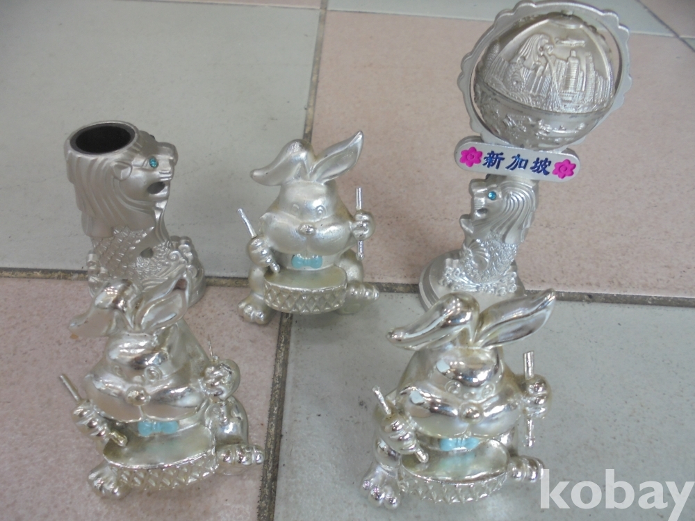 토끼들의 북치는 모션과 괴고기몸통에 사자머리 필통과 문명화된조각 둥근본 특수합금으로 멋있는 괴동물들의 악세사리 5점