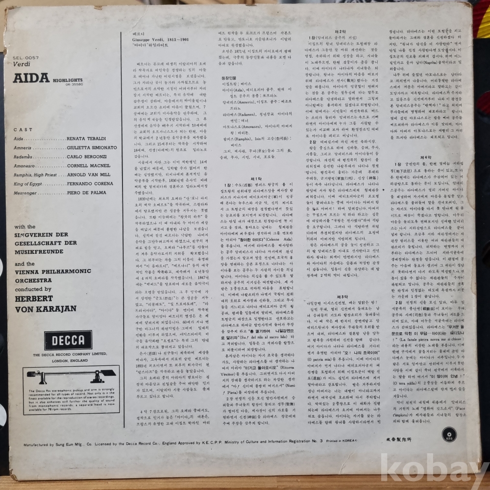 베르디 [아이다] 하일라이드 성음 DECCA 1972년