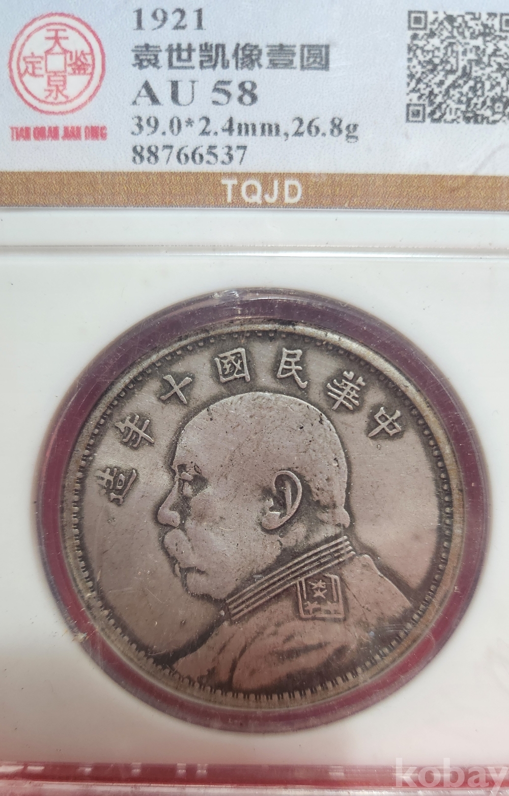 1921년 큐알코드(QR CODE)가 함께하는 은색 중화민국 10년 화패로 밀봉된 상태입니다,