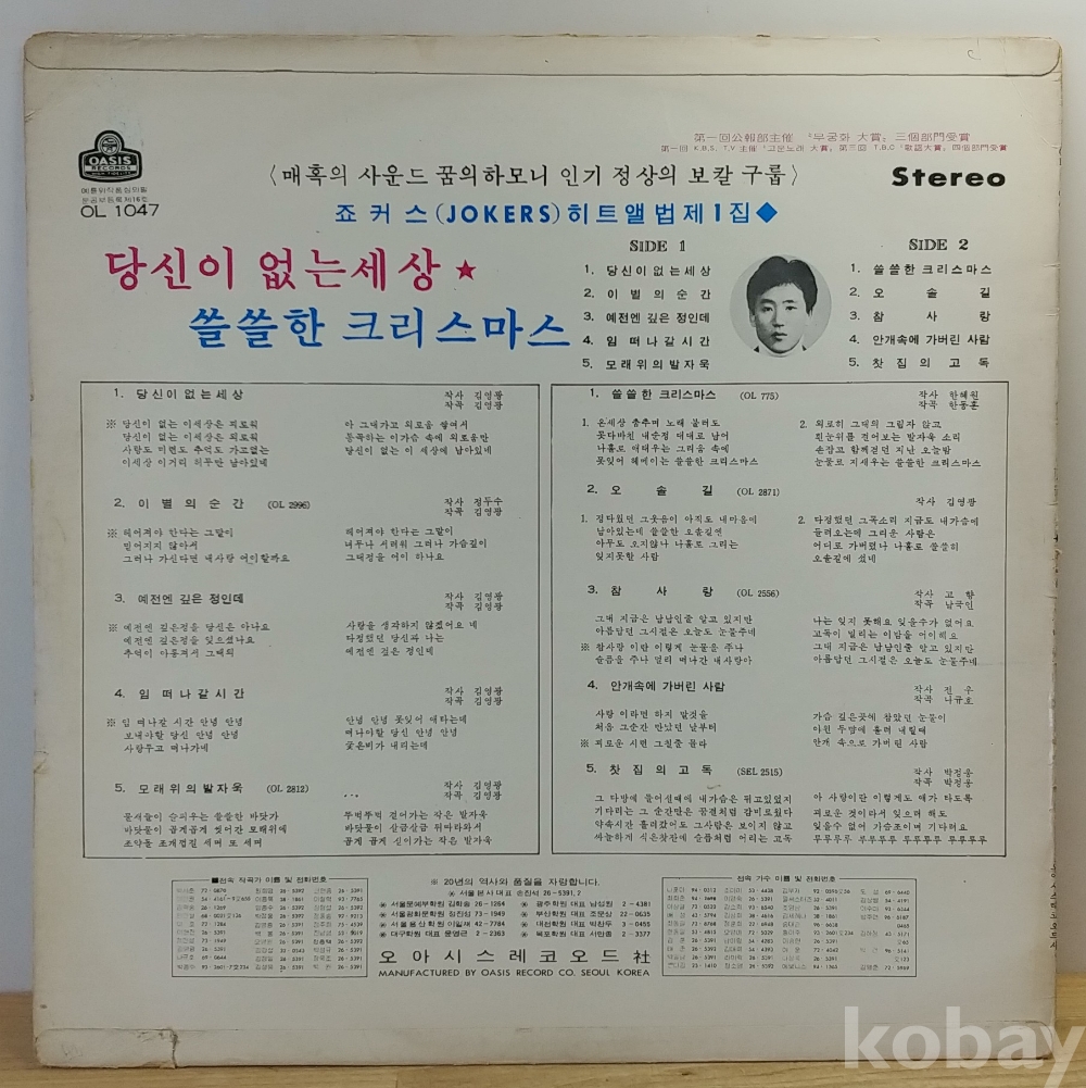 죠커스 히트앨범 제1집 (당신이 없는 세상 / 이별의 순간) 1971년 오아시스레코드 초반
