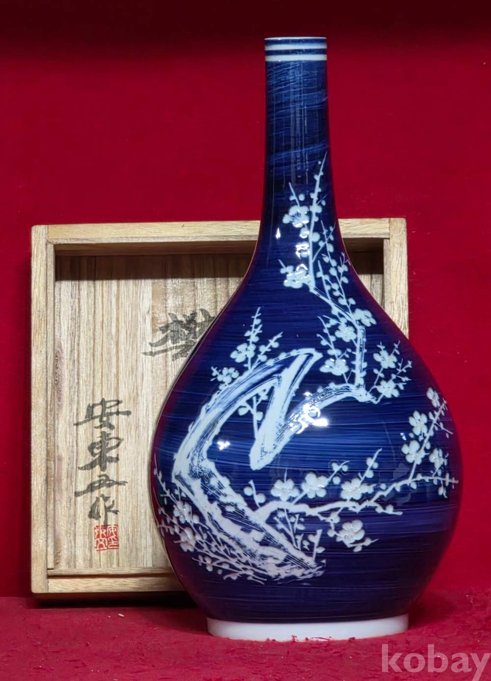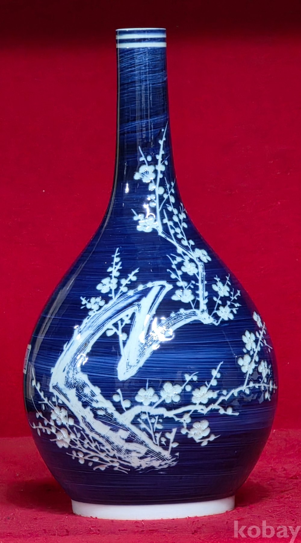 인간문화재 호산 안동오 선생님의 청채 매화 주병 대형 입니다