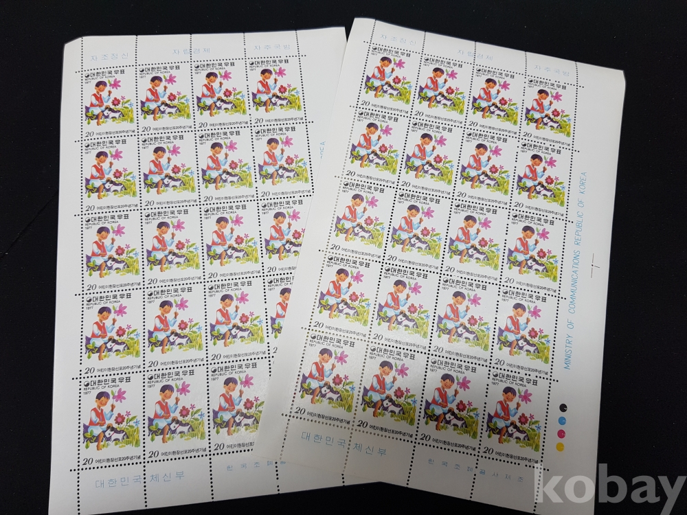 - 미사용 1977년 어린이헌장선포 20주년 기념 전지 2매 일괄