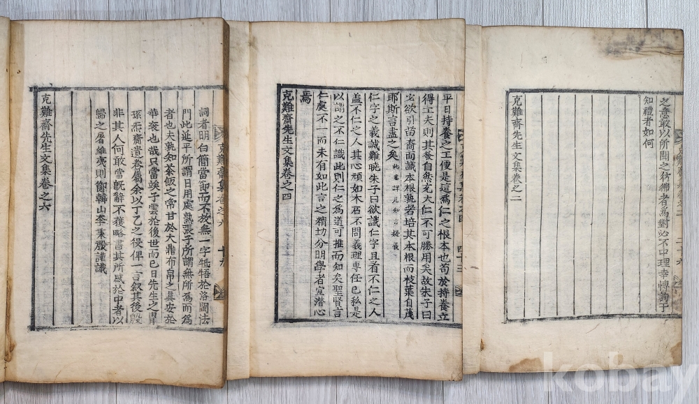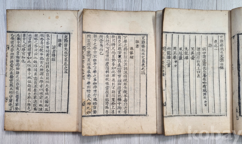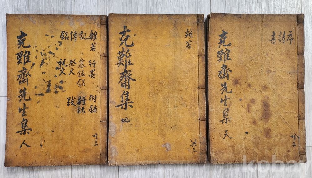 조선시대 1869년 극난재 선생문집 (천. 지. 인.) 6권 3책 완질 입니다 발문- 도유(기사 1869년) 이칙절한산. 이병은 근지. 낙장 파본 없습니다