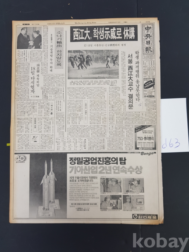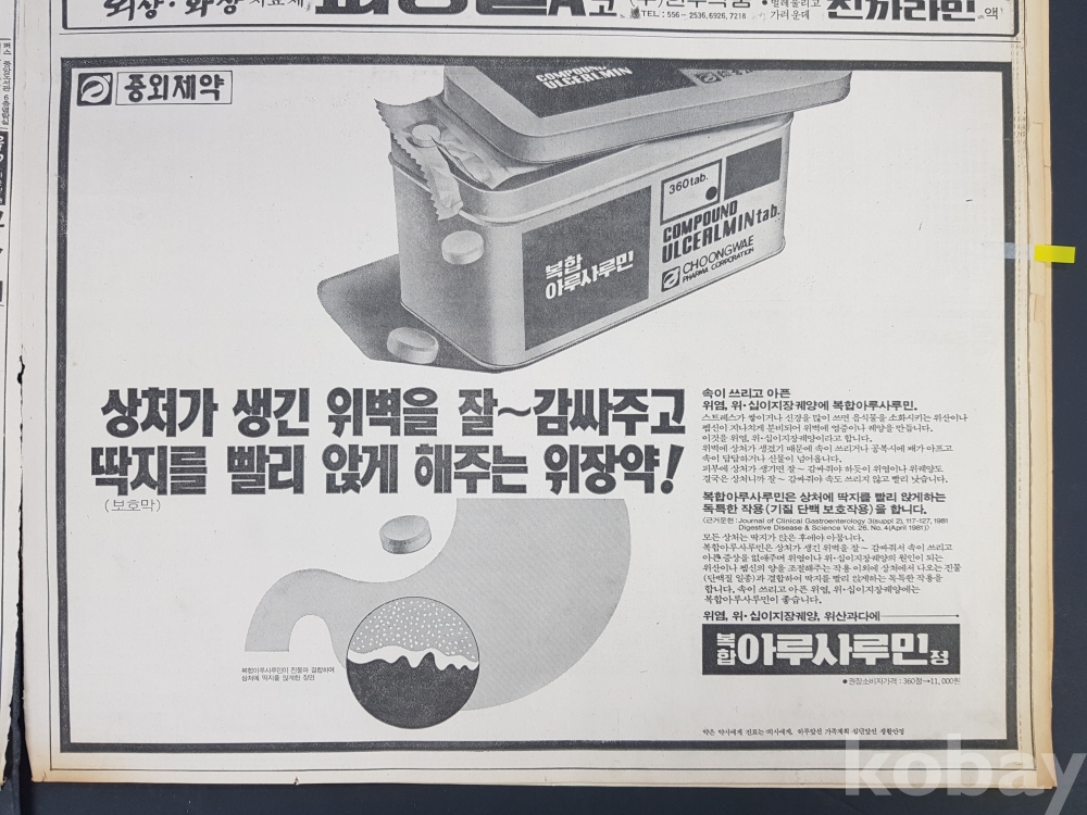 **** 1984.04.12(중앙일보)/중외제약 복합아루사루민정 광고포함/약 12면