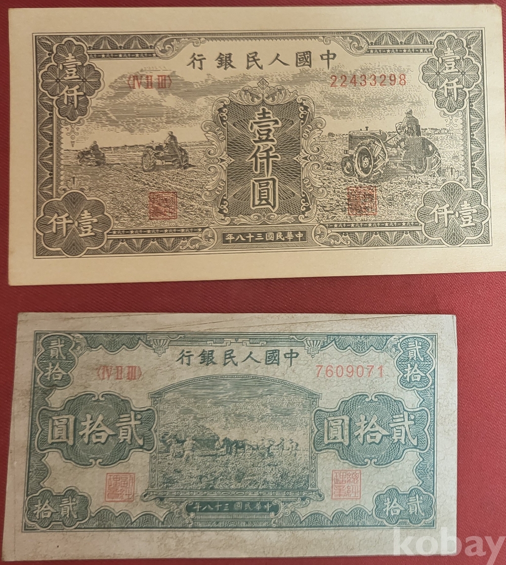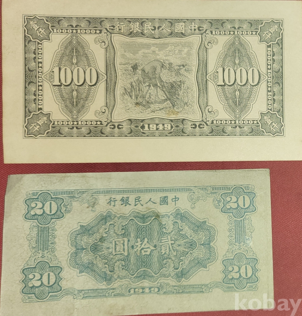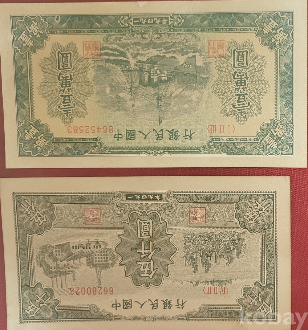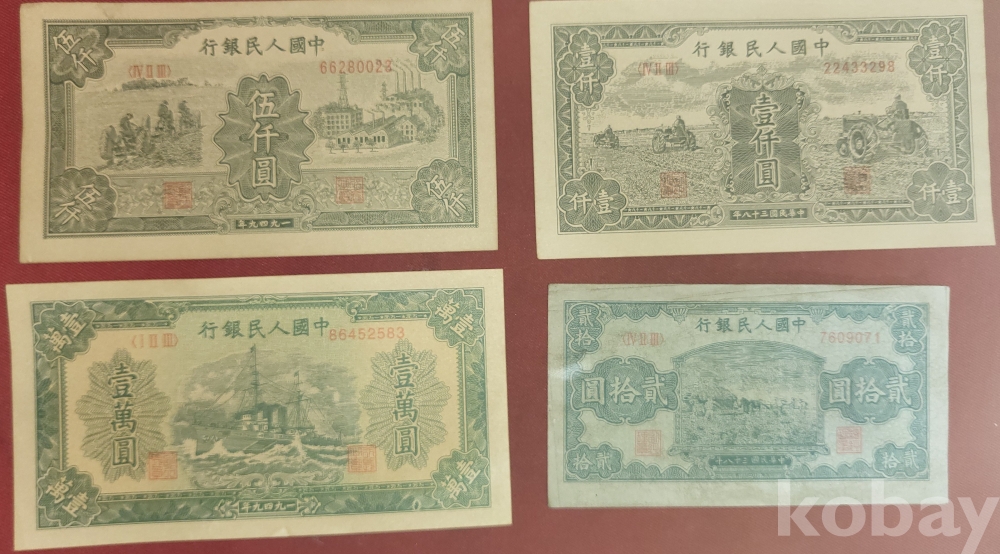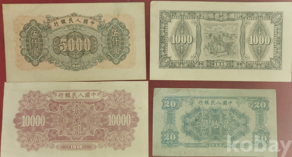 Tㅡ1ㅡ3 호 다섯下 스치 번 /////// 중국 돈으로 보이는 지폐 4장입니다,