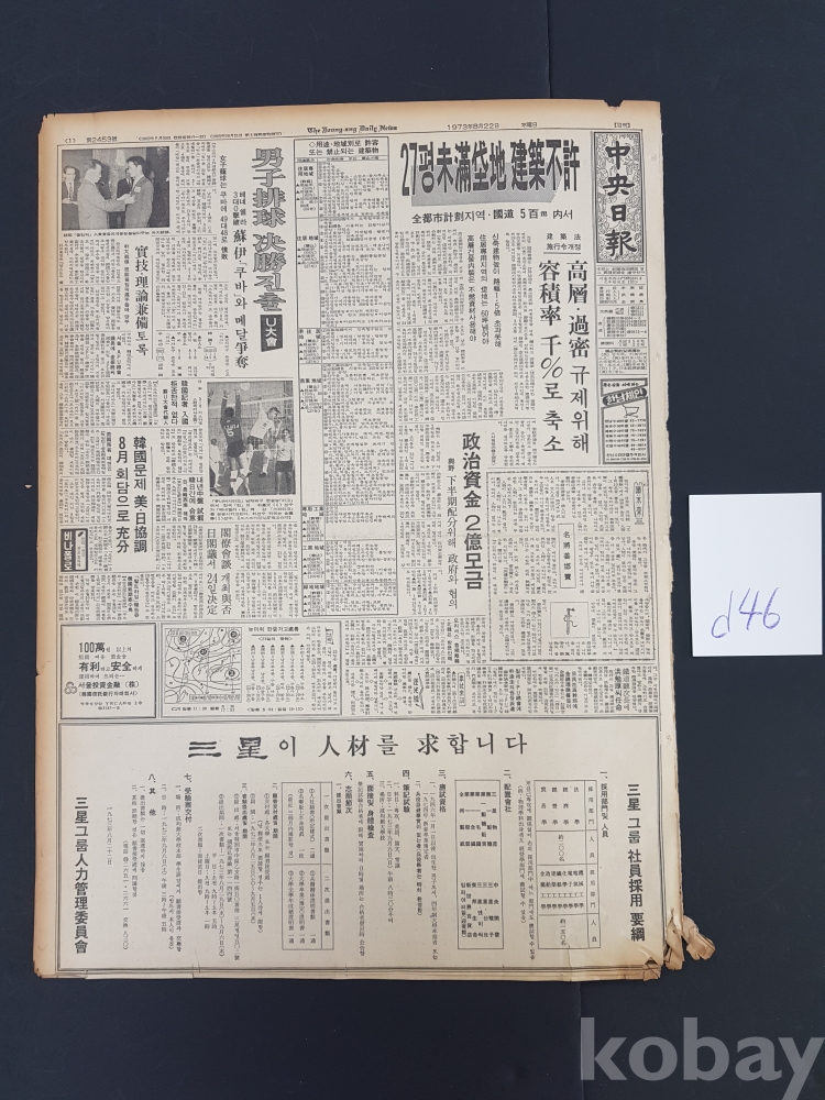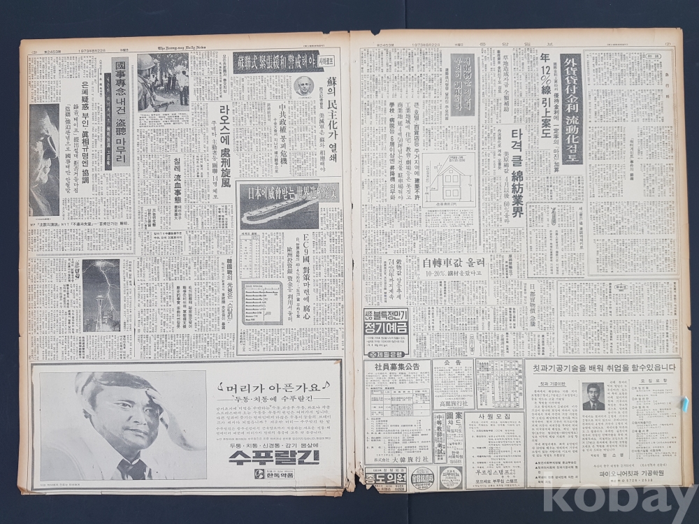 **** 1973.08.22(중앙일보)/파이오니어칫과 기공학원 모집 광고포함/약 8면