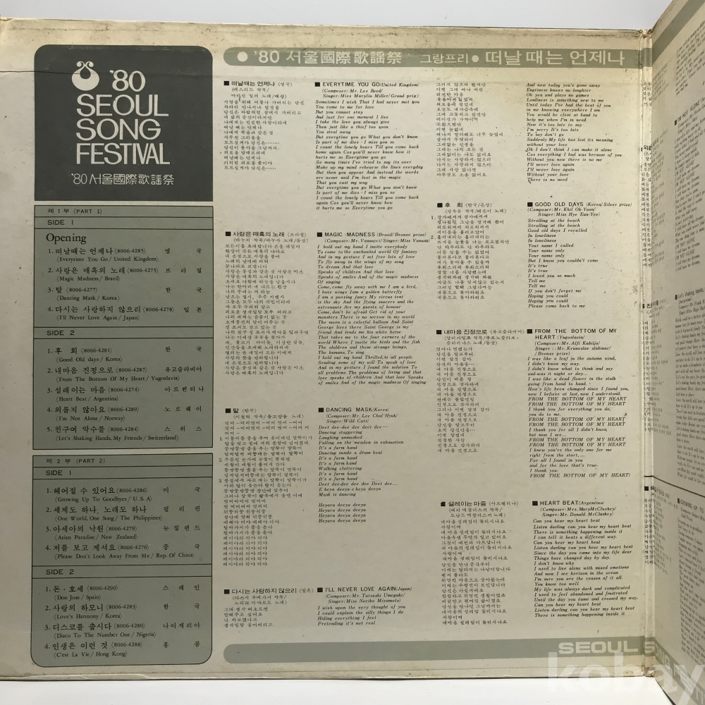 LP 160-13 80 서울국제가요제 - 혜은이 진미령 들고양이들 2LP 80 지구 자켓 EX+ 알판 EX+