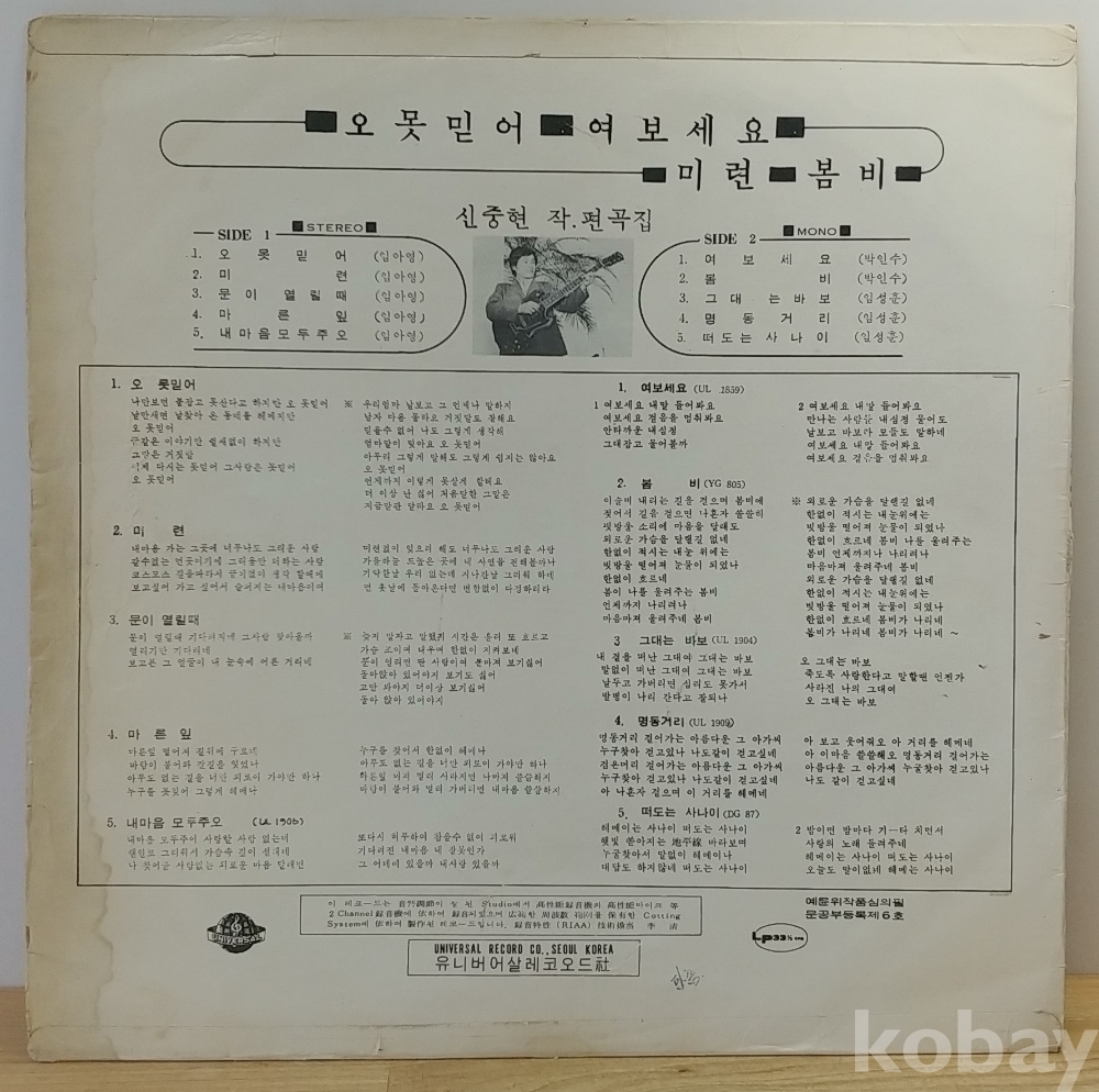 임아영 (오 못믿어 / 미련) 신중현 작편곡집, 1970년 유니버샬레코드 초반