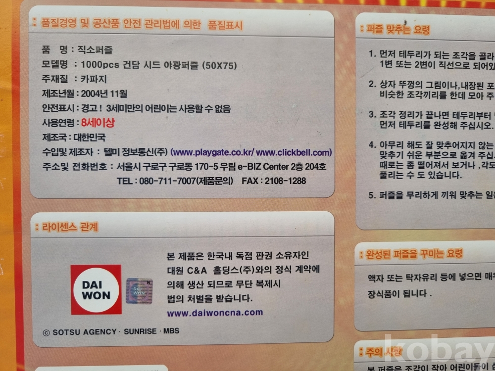 | 제조국 | 한국 | 연대 | 연대미상 |