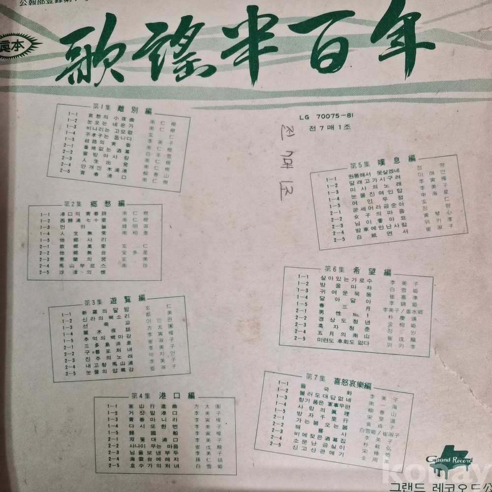 1968년 그랜드레코드社 발행 ‘가요반백년’ 7LP 박스 세트 이며