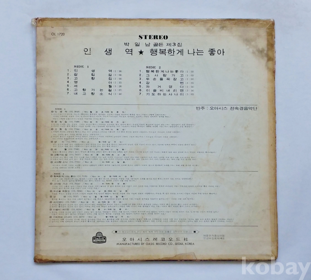 | 자켓상태 | EX : 약간의 마모, 모서리 찢김 존재 | 음반상태 | VG : 생활 기스 다수, 가벼운 노이즈 존재 | 발매정보 | 알수없음 | 가사지여부 | 무 |