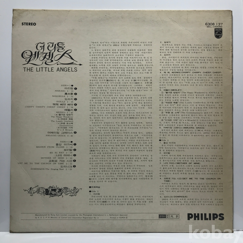 LP 160-61 THE LITTLE ANGELES - 아리랑/ 어메이징 그레이스 73 성음 자켓 EX 알판 EX+