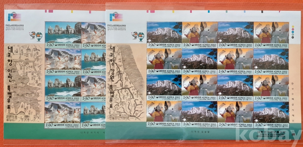 내고향 특별 우표(인천, 강원) 16매 전지 2종 입니다.