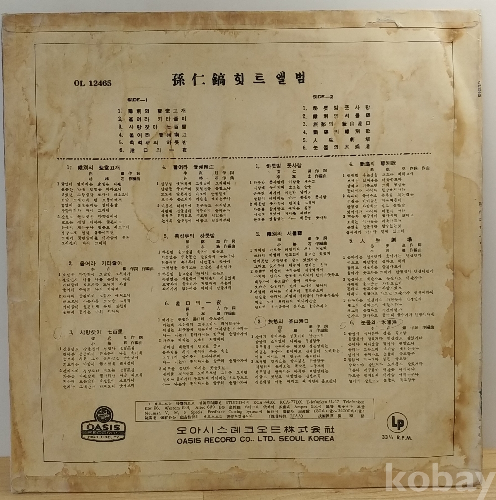 손인호 힛트앨범 (이별의 성당고개 / 하룻밤 풋사랑) 오아시스레코드