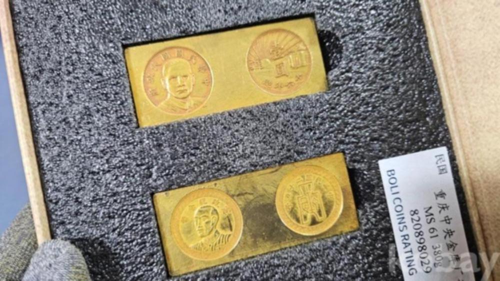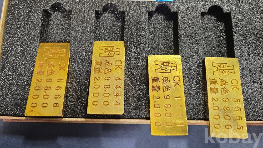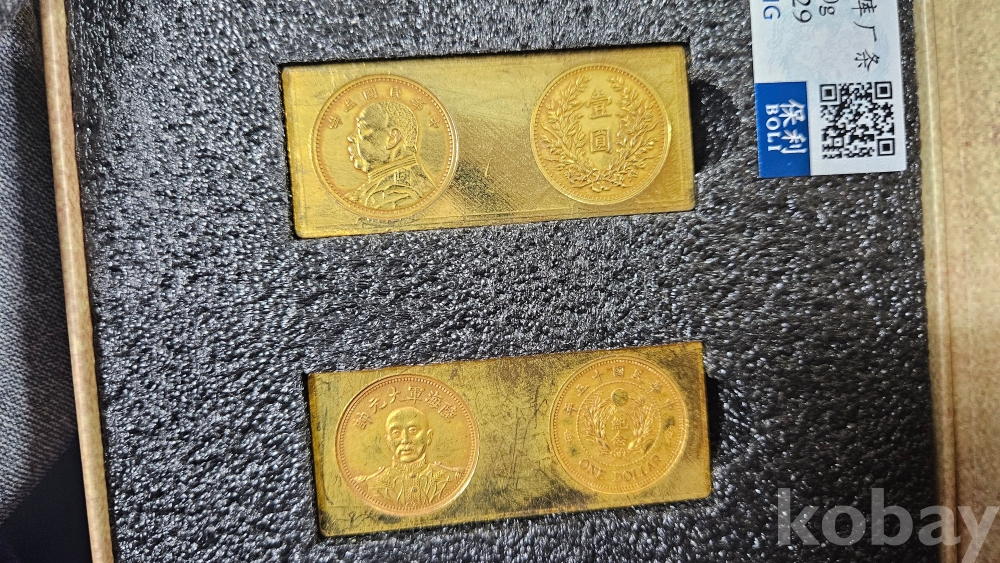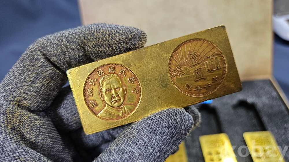 인물이 찍혀져있는 금괴형 골드바형 금색 덩어리 4종 일괄입니다.