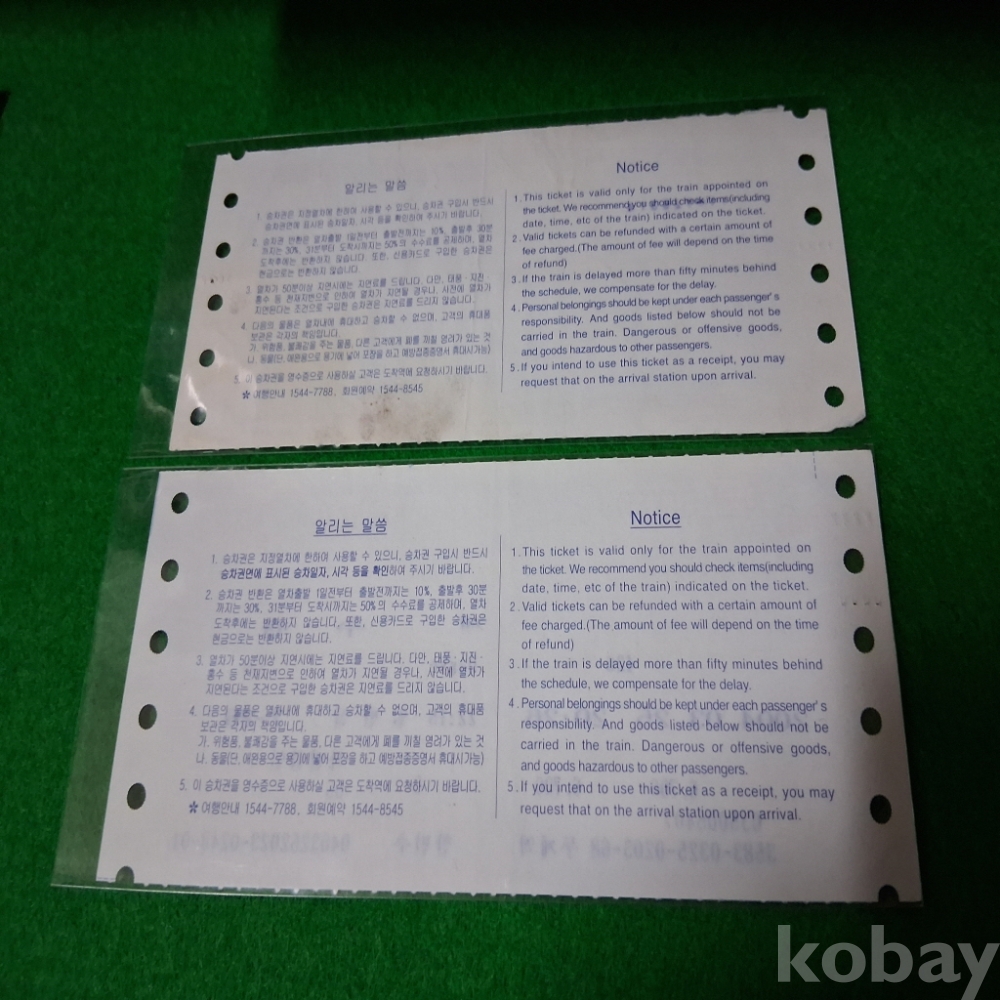 한국철도 특별용지 승차권 2매