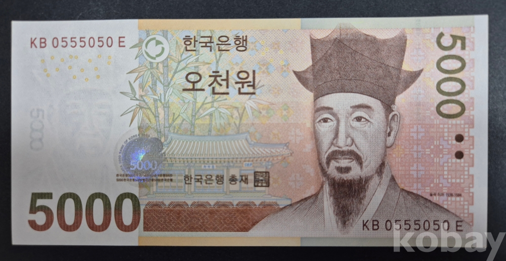 - 2006년 5차 오천원 0555050 투디지트 특이번호 미사용 지폐