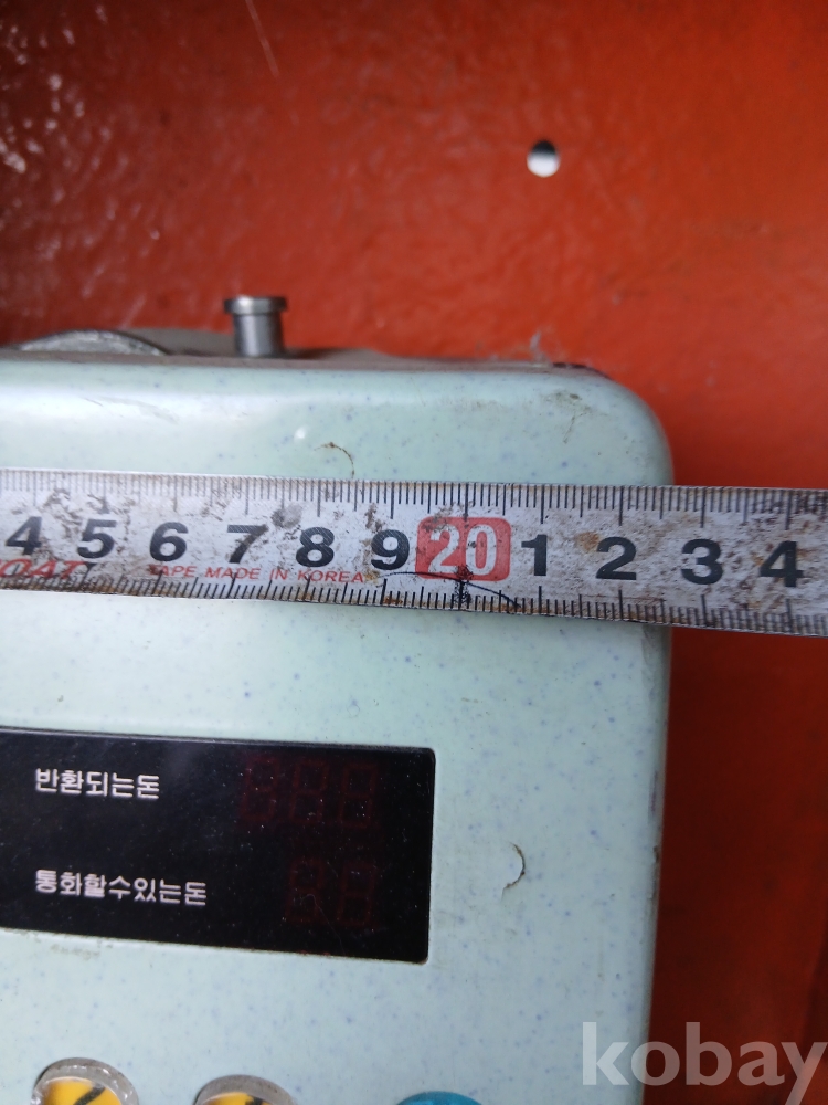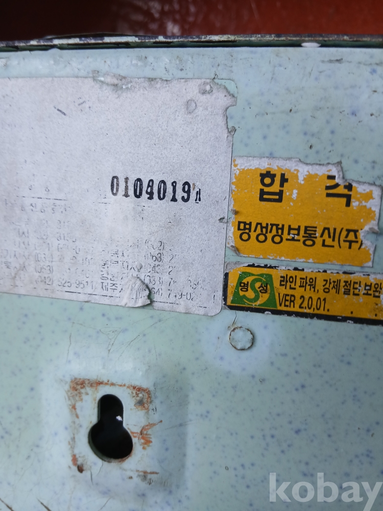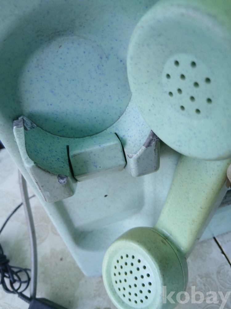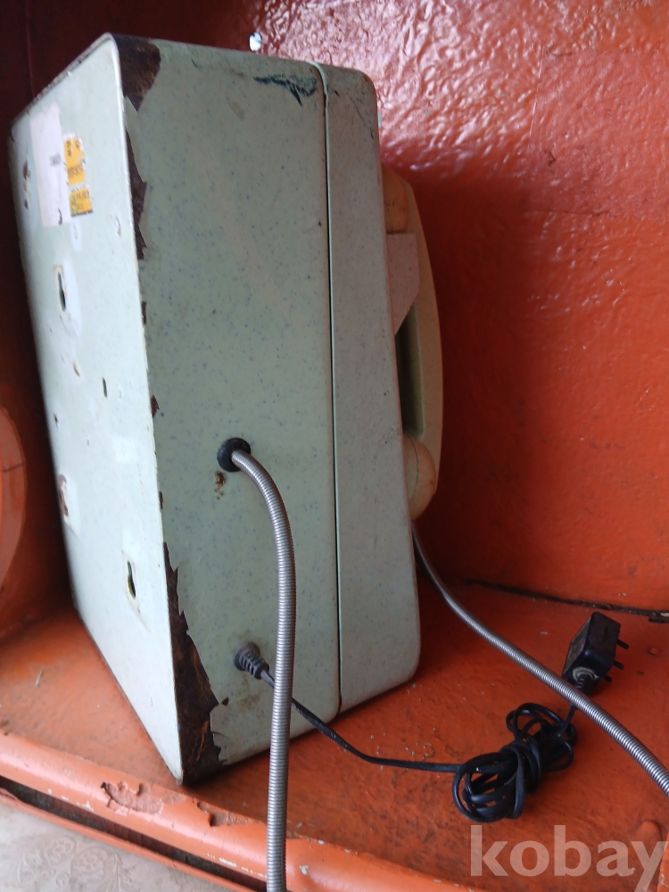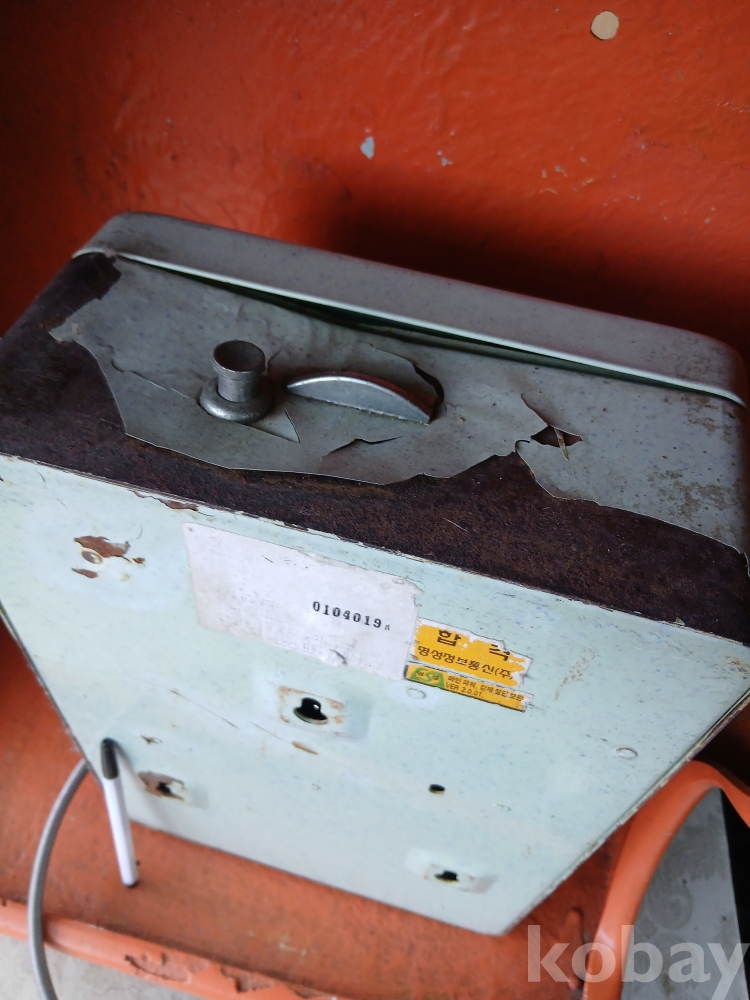 ☆ 송수화기 절단도난을 방지하기 위한 철재외피 전화선과 사각형의 단순디자인 그리고 상단부 동전투입구와 하단부 반환구를 구비하고 있으며 전면 중간부분에 운용사인 한국통신 명판과 뒷면 일측면에 제작자 명판이 보존되어 있습니다.