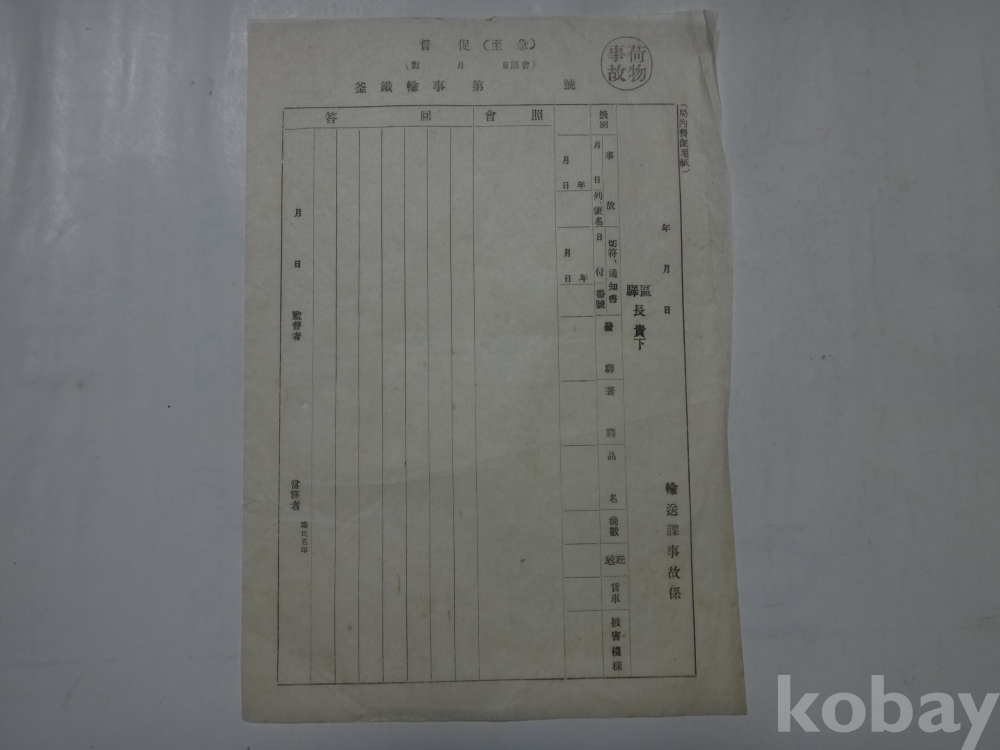 군사수송 실적 월보 양식 (육운국장 귀하..역장)