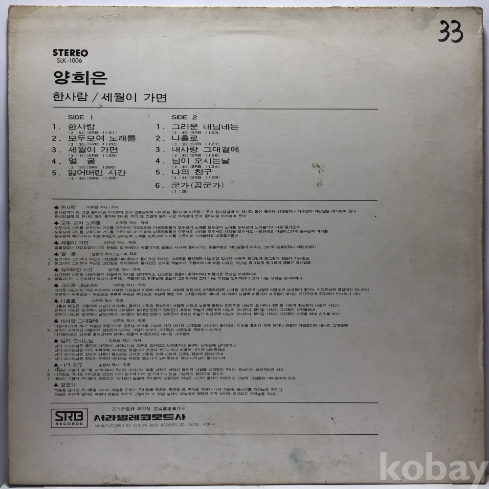 LP 82,000-57 양희은 - 한사람/ 세월이 가면 자켓 EX 알판 EX 76 년 국내반