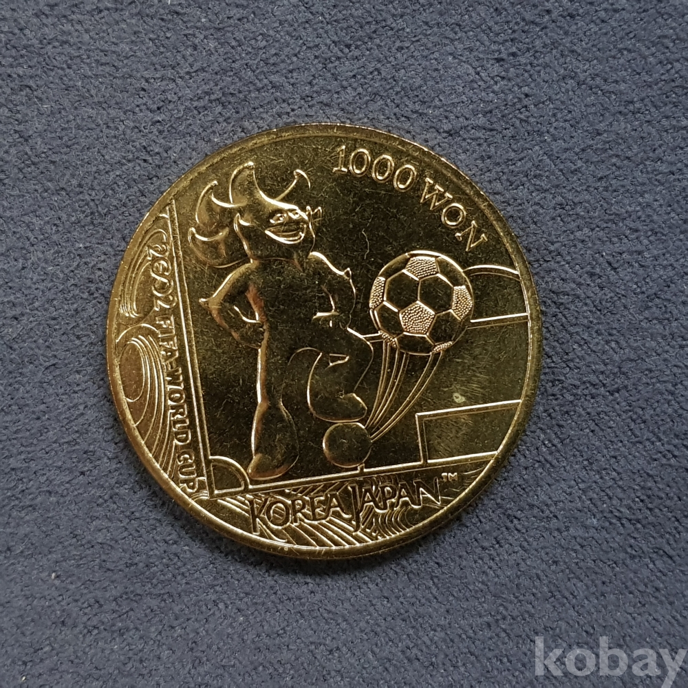 - 2002 FIFA 월드컵/한국/일본 1차 공식마스코트와 축구공 천원 기념주화