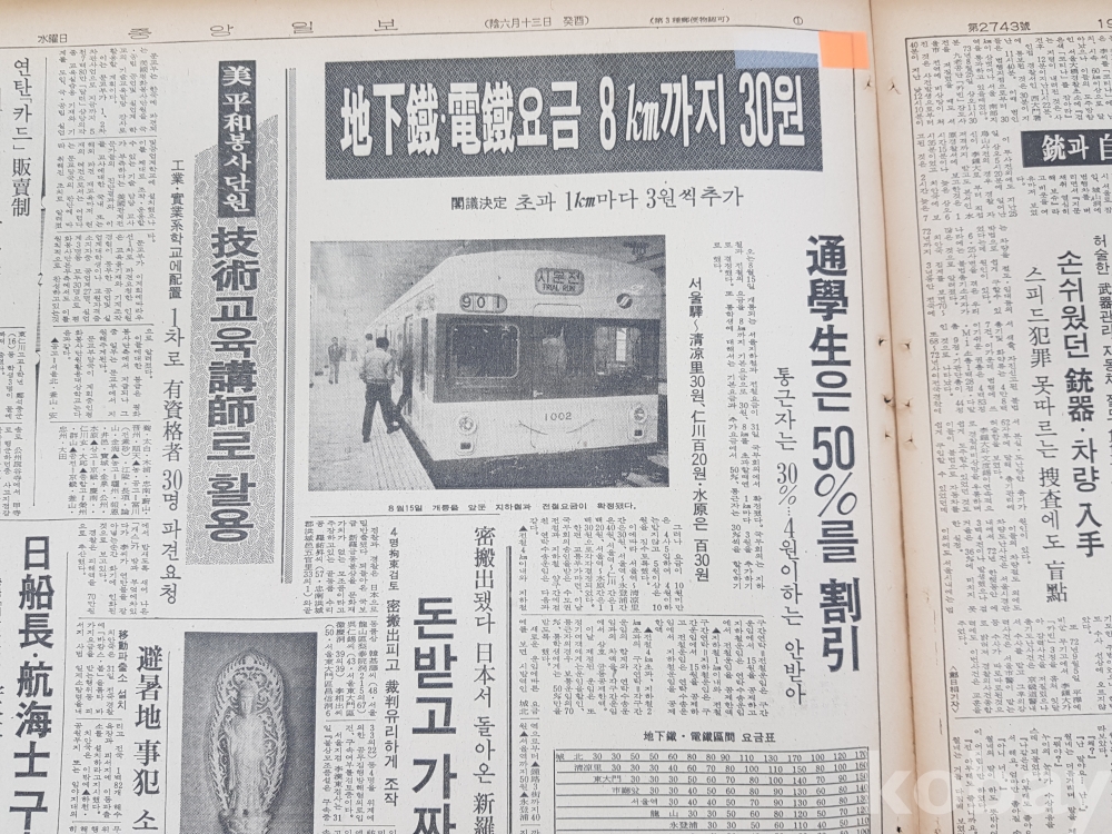 **** 1974.07.31(중앙일보)/지하철·전철 요금상승 광고포함/약 8면