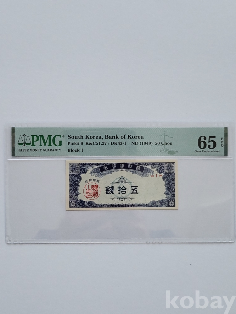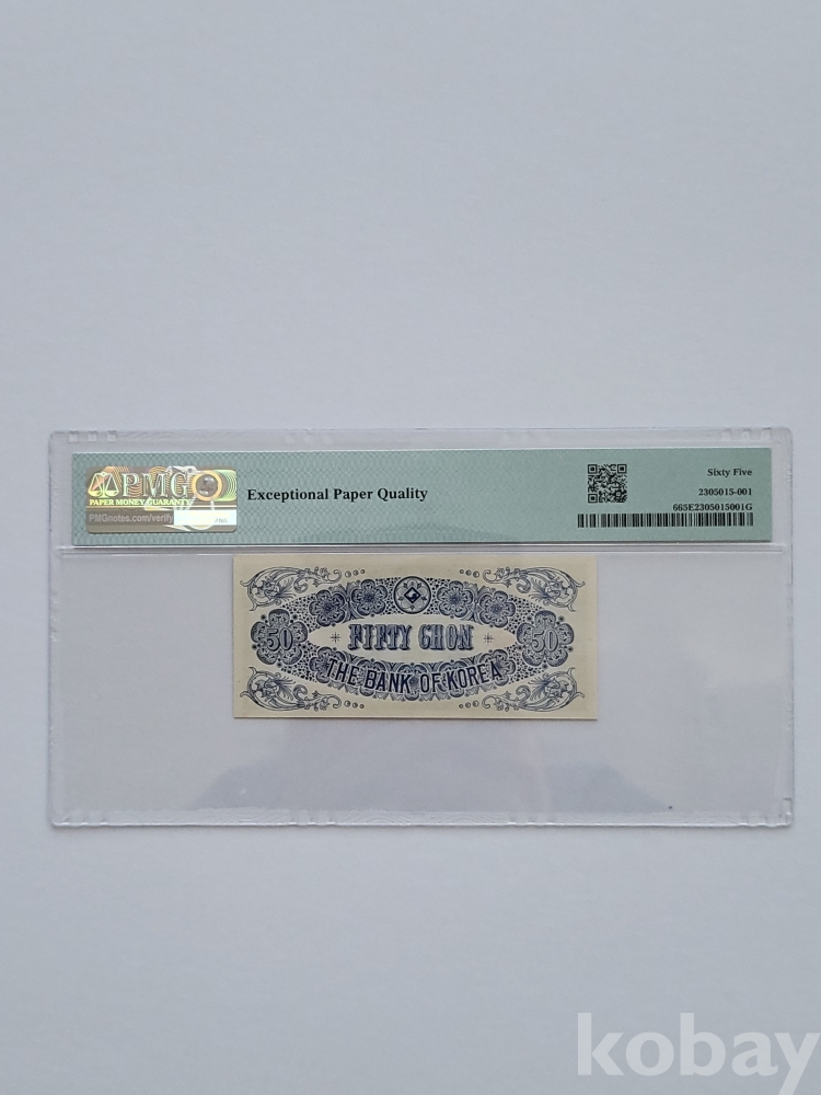 조선은행 소액 오십전 65등급 지폐