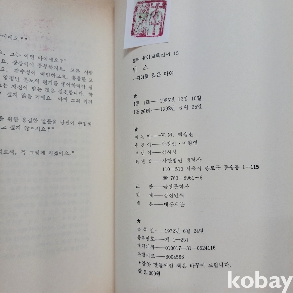 중급 : 표지없음/ 바램/ 필기 낙서/ 직인/ 갈라짐