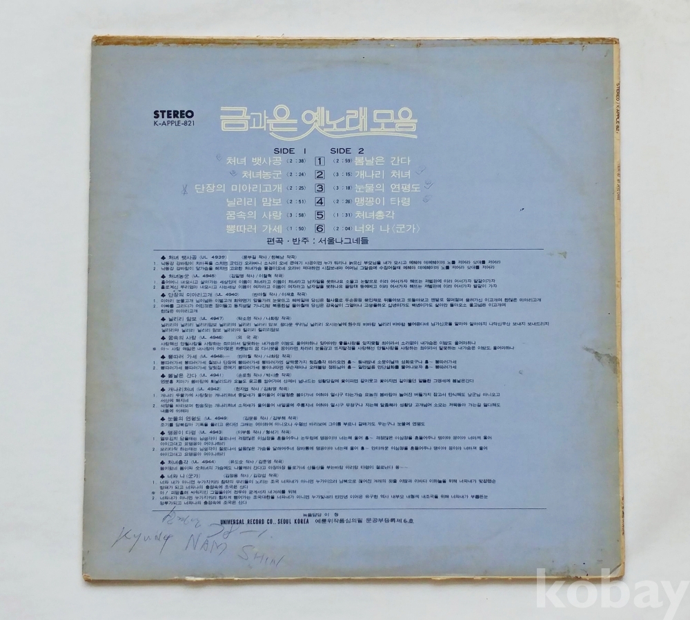EX : 약간의 마모, 모서리 찢김 존재 음반상태