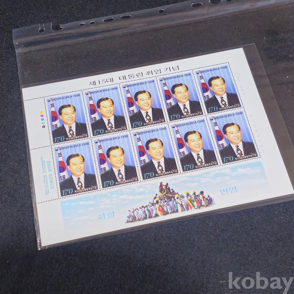 (천원경매) (((대통령자료/우표/쉬트))) 1998년 제15대 김대중 대통령 취임기념 우표전지 (미사용)