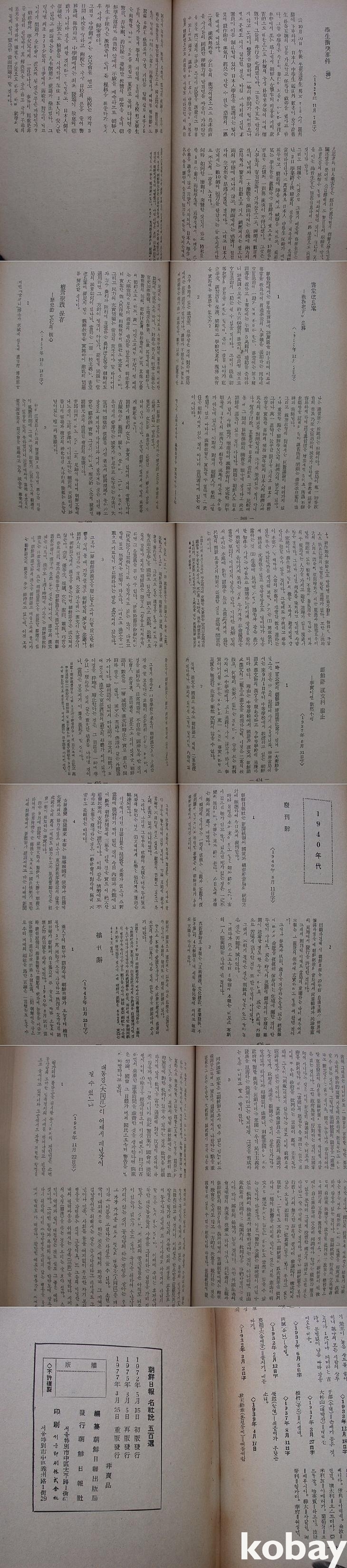 ▒ 1972년 조선일보사에서 발행한 조선일보출판국 편찬, <朝鮮日報名社說五百選>의 1976년 6판본이다.