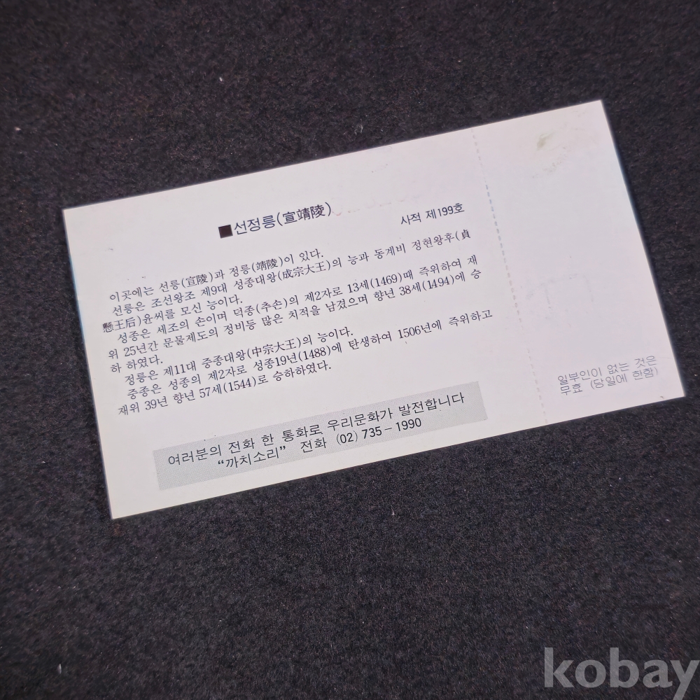 (((근현대사자료))) 오래전 선정릉 관람권 (청소년및 군인 170원)