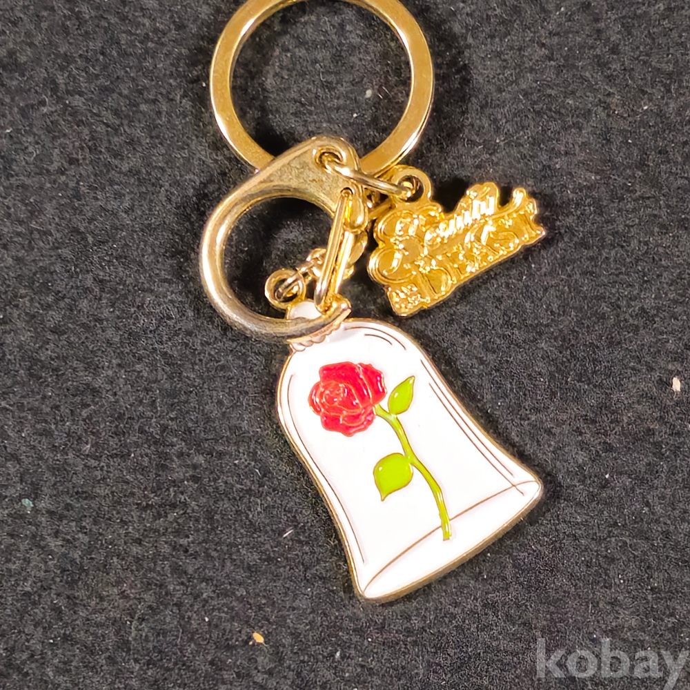 (((키링/키홀더/열쇠고리/가방걸이))) 오래전 Disney Beauty and the BEAST 이쁜 장미꽃모습 금속 키홀더