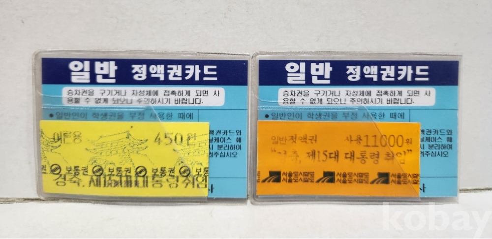 -1997년 제 15대 대통령취임기념 일반 및 정액 승차권 2종 입니다.