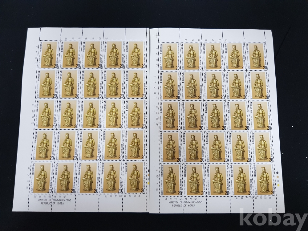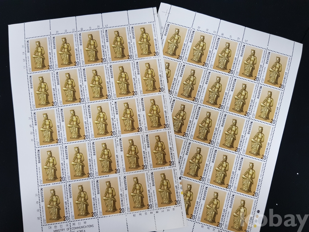- 미사용 1979년 한국미술 5000년 제 1차 금동미륵보살 반가사유상 전지 2매 일괄