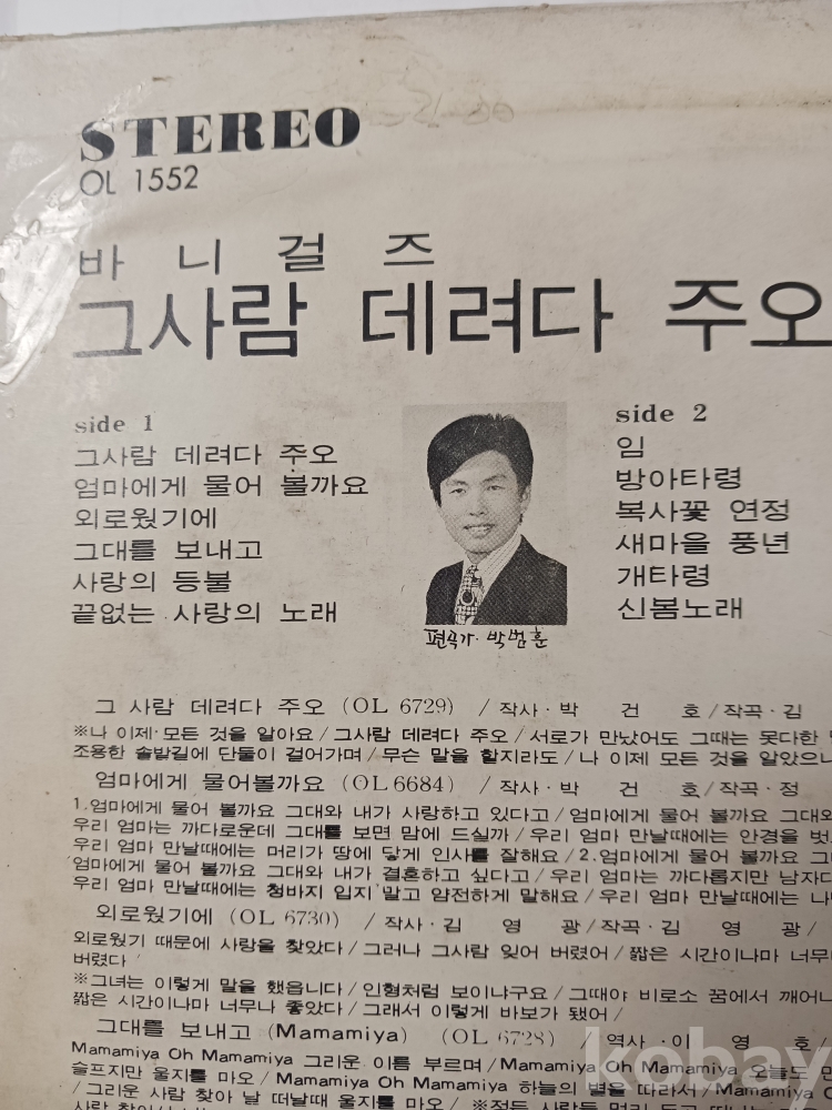 | 자켓상태 | EX : 약간의 마모, 모서리 찢김 존재 | 음반상태 | NM : 개봉했으나 미사용급, 스크래치 없음 | 발매정보 | 초반 | 가사지여부 | 무 |